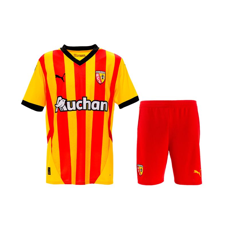 The RC Lens 2024/2025 Kids Home Kit blends tradition with contemporary design, featuring the club’s signature yellow and red stripes, black accents on the collar and cuffs, and a subtle geometric print celebrating the Bollaert-Delelis stadium’s architecture. Crafted for comfort and designed with young fans in mind, this kit allows kids to display their team loyalty with pride, whether they’re at the match or playing with friends.