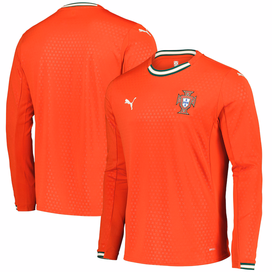Discover the Portugal 2024-2025 Long-Sleeve Jersey at our online store, a must-have for fans of A Seleção. Crafted by Nike, this stunning red kit features green and black accents inspired by the Portuguese flag, blending tradition with modern style. Equipped with moisture-wicking technology, it offers ultimate comfort for matchdays or casual wear. Shop now at Kick Off and support Portugal’s stars like Cristiano Ronaldo in this iconic Euro 2024-ready design!