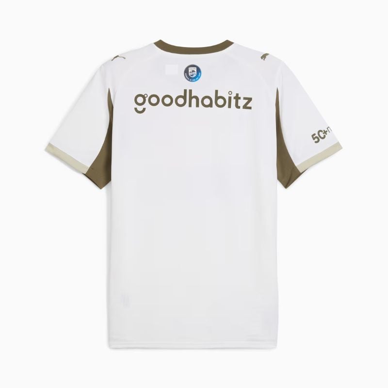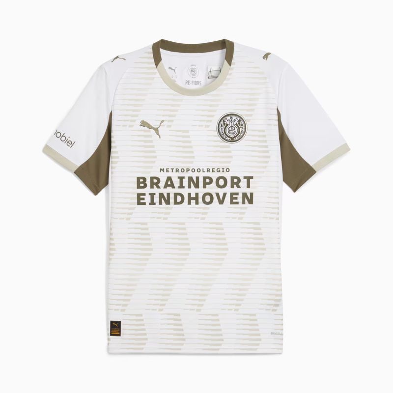 Embrace retro style with the PSV Eindhoven 2025-26 third jersey! Crafted by Puma, this sleek white design features a subtle geometric pattern and olive accents, highlighted by the vintage 1917-1933 logo. Perfect for passionate fans. Available in limited edition at EliteSoccer.Store.