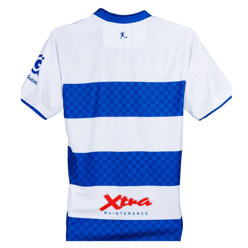 Introduce young fans to the Queens Park Rangers 2025-26 home kids’ kit! This Erreà blue hoops jersey with chequered motif comes with a matching short, honoring the club’s legacy with the “Then. Now. Forever. QPR” message inside the collar. Ideal for supporting the Hoops in style. Available in kids’ sizes at EliteSoccer.Store.