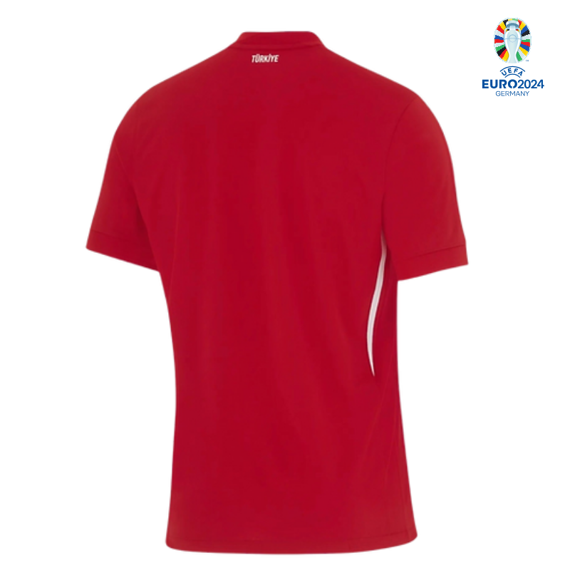 The Türkiye Away Shirt for 2024, designed by Nike for Euro 2024, is characterized by its minimalist and striking red design. This shirt embodies the passion and national pride of Türkiye with its use of the red color reminiscent of Al Sancak—the Red Flag. The away kit features a solid red base with white accents, including the Nike Swoosh and the Turkish national team’s crest, which is placed prominently on the chest. The shirt also includes “TÜRKIYE” printed on the upper back, emphasizing national unity.